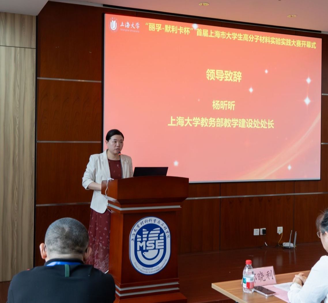 杨昕昕处长指出,本次大赛是对上海高校高分子材料实验教学成果的集中检验,既为学生提供切磋技艺、拓展视野的机会,也为教师搭建交流教学模式的平台。她特别感谢企业对高等教育的支持,指出企业的深度参与不仅保障赛事的专业性,更彰显行业对人才培养的责任担当,期待未来校企合作实现资源互补,共育行业精英。